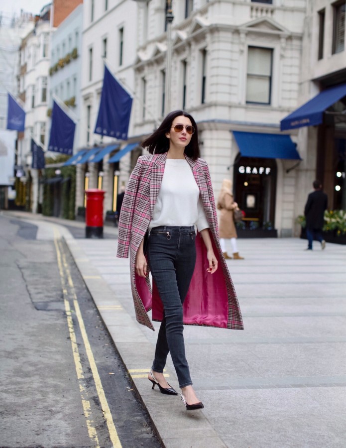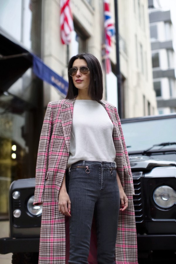 For those days that call for a pinch of millennial pink to perk you up out of your winter blues, this longline, plaid coat is perfect. I wore it during a day of shopping, while in London last month.