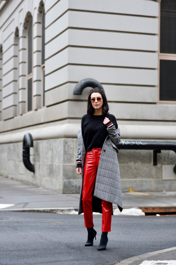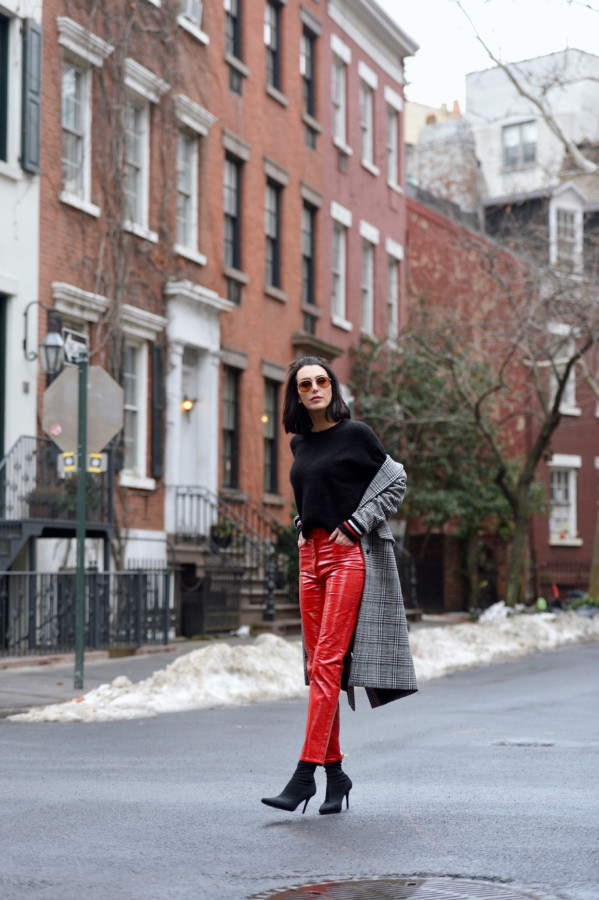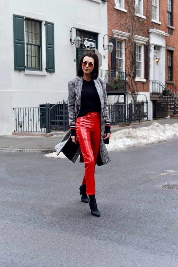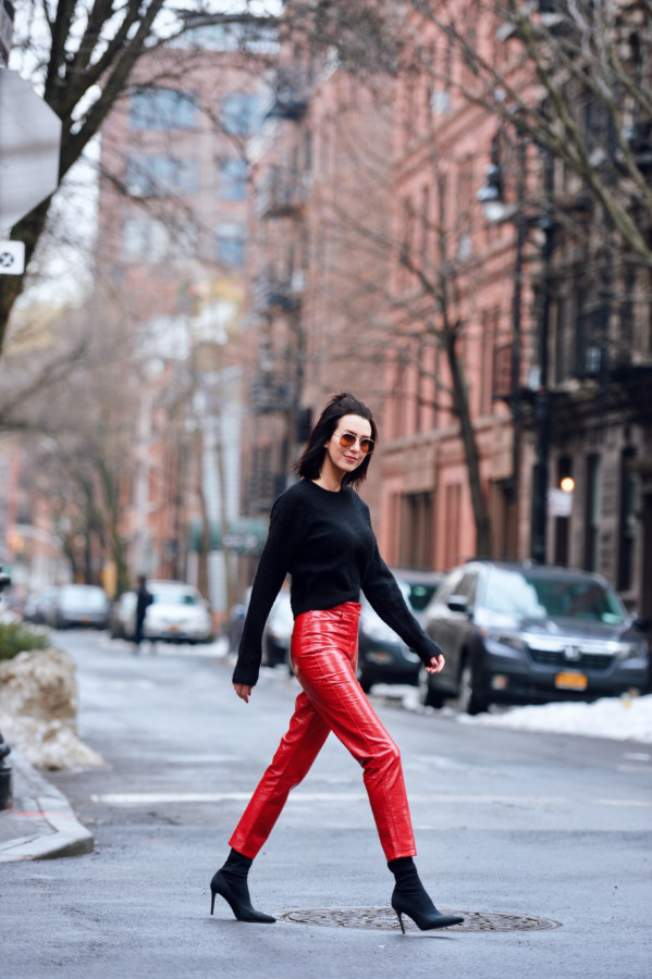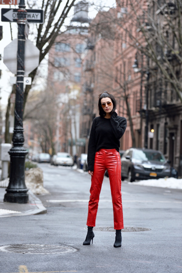 That said, it’s all about finding a good fit. I got lucky with these red vinyl pants from Asos because the high-waisted fit actually gave room to move about and the squeak factor is at a minimum. So, if you’re looking for an affordable, on-trend alternative to leather pants, look no more.