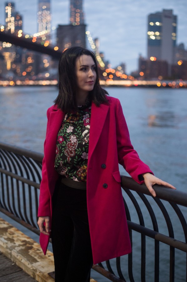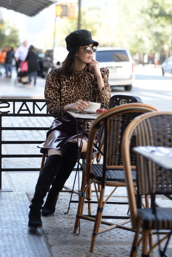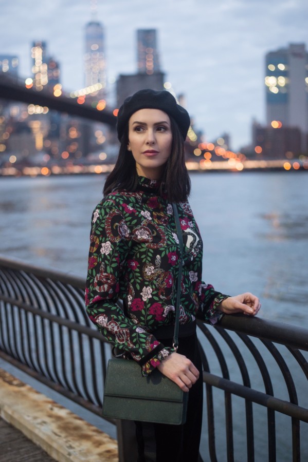 This design house isn’t afraid of using bright colors or bold prints, which is another reason why I have an infatuation with them. Several garments from the QUEGUAPA fall/winter 2017-18 collection come in a radiant magenta and red, which you’ll continue to see a surprising amount of both well into the winter months. My most loved print from this collection features a dark floral design that has snakes intertwined with the blooms (very Gucci-like), however, in a close tie for first in my heart is the leopard motif (those voluminous sleeves have made me their prey).