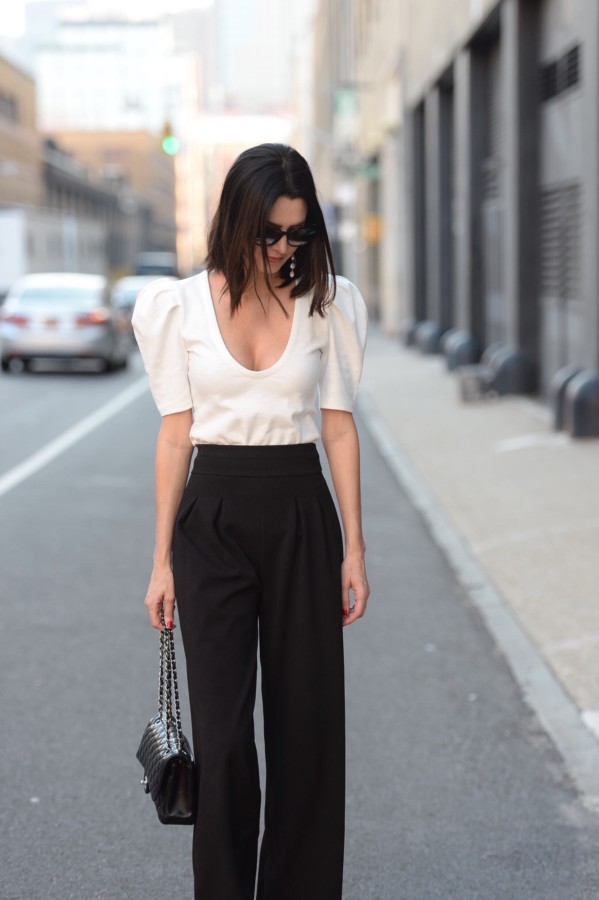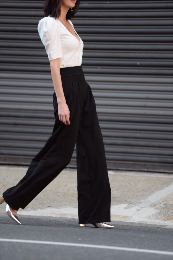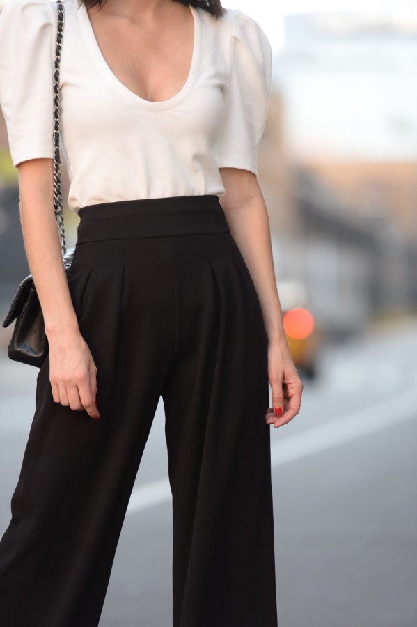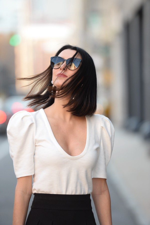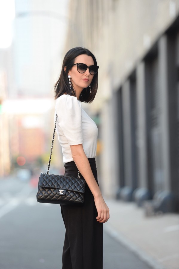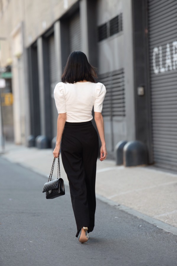 Below, you can see more of this outfit that I wore during New York Fashion Week. The look embraces the 80s shoulder puff, yet softly subdues the sometimes loud trend using a classic black and white color combination. My advice to you for the fall: don’t be afraid to dabble in excess or to be a bit extra.